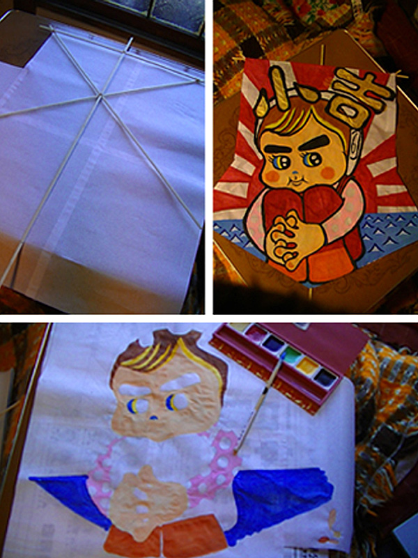ひさしぶりに凧を作ってみた。静岡生まれなので、かたちは駿河凧。エラがでっぱってるところがかっこいい。絵はやはりとどろき豆太郎、われら庶民に小さなしあわせが訪れますよーに。