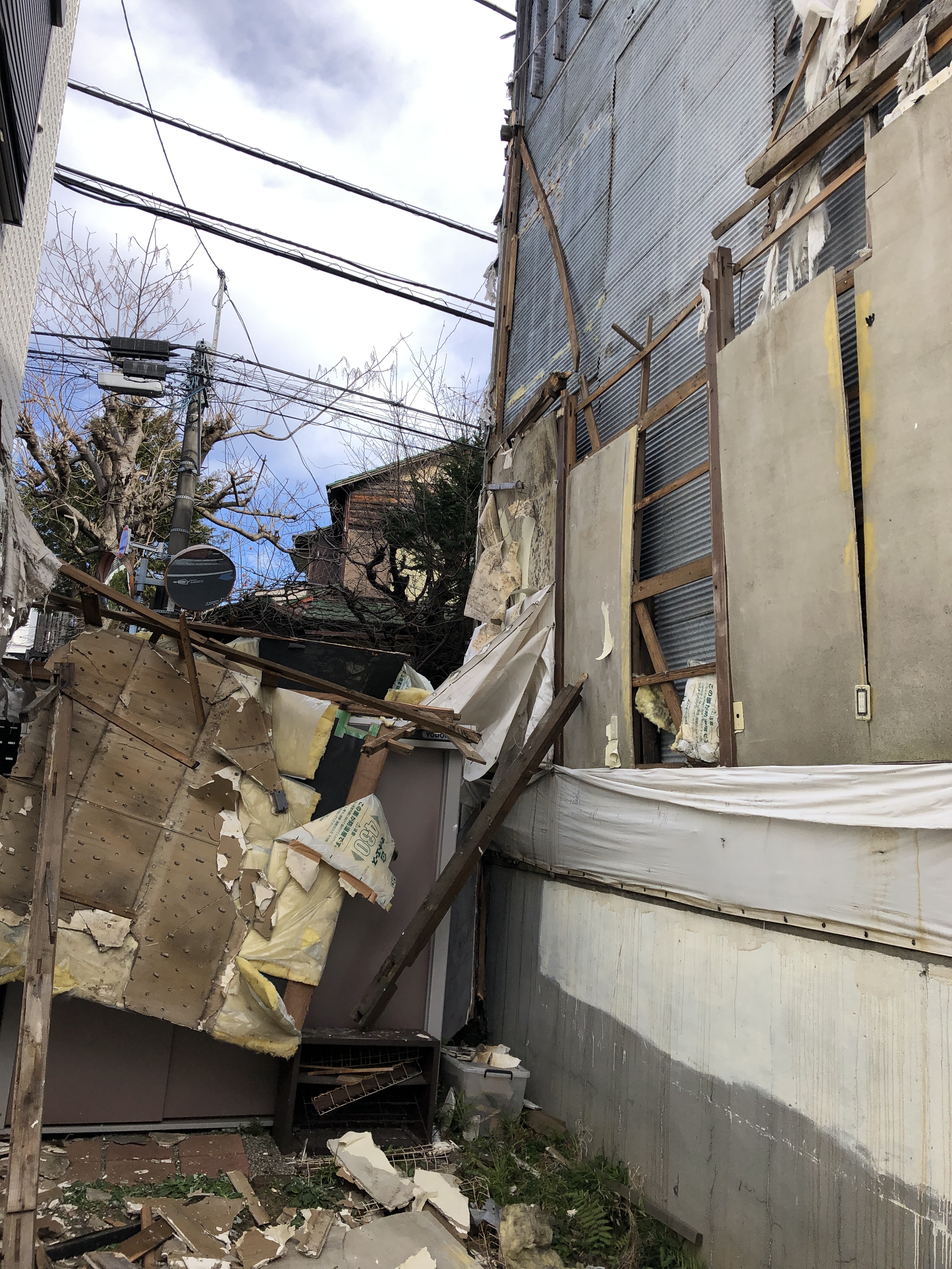 真夜中に杉並署から電話があり行ってみると、5年前の火事でボロボロだった隣の空き家が強風で崩落。