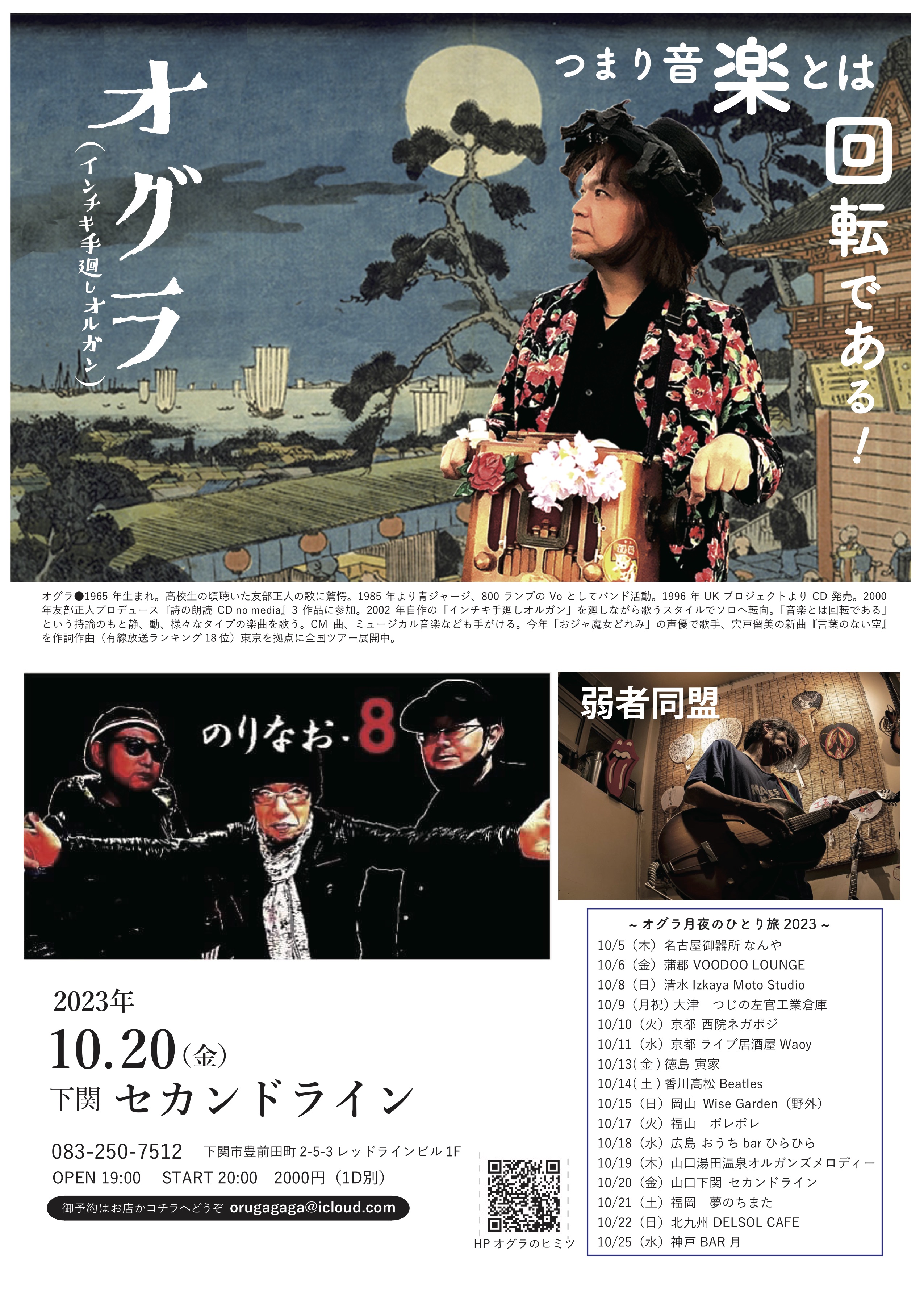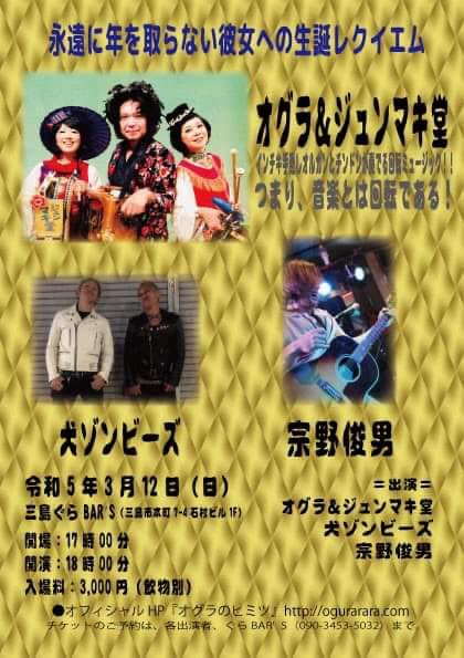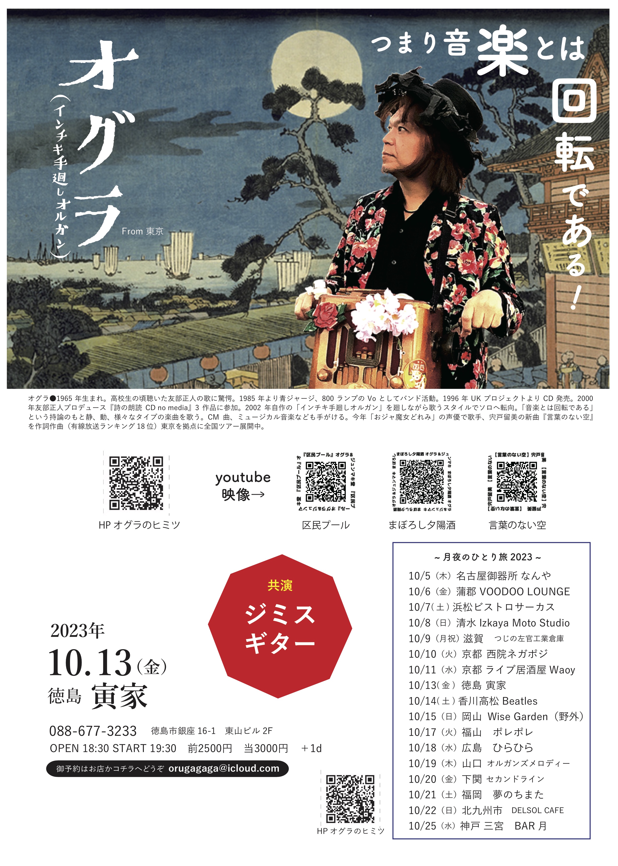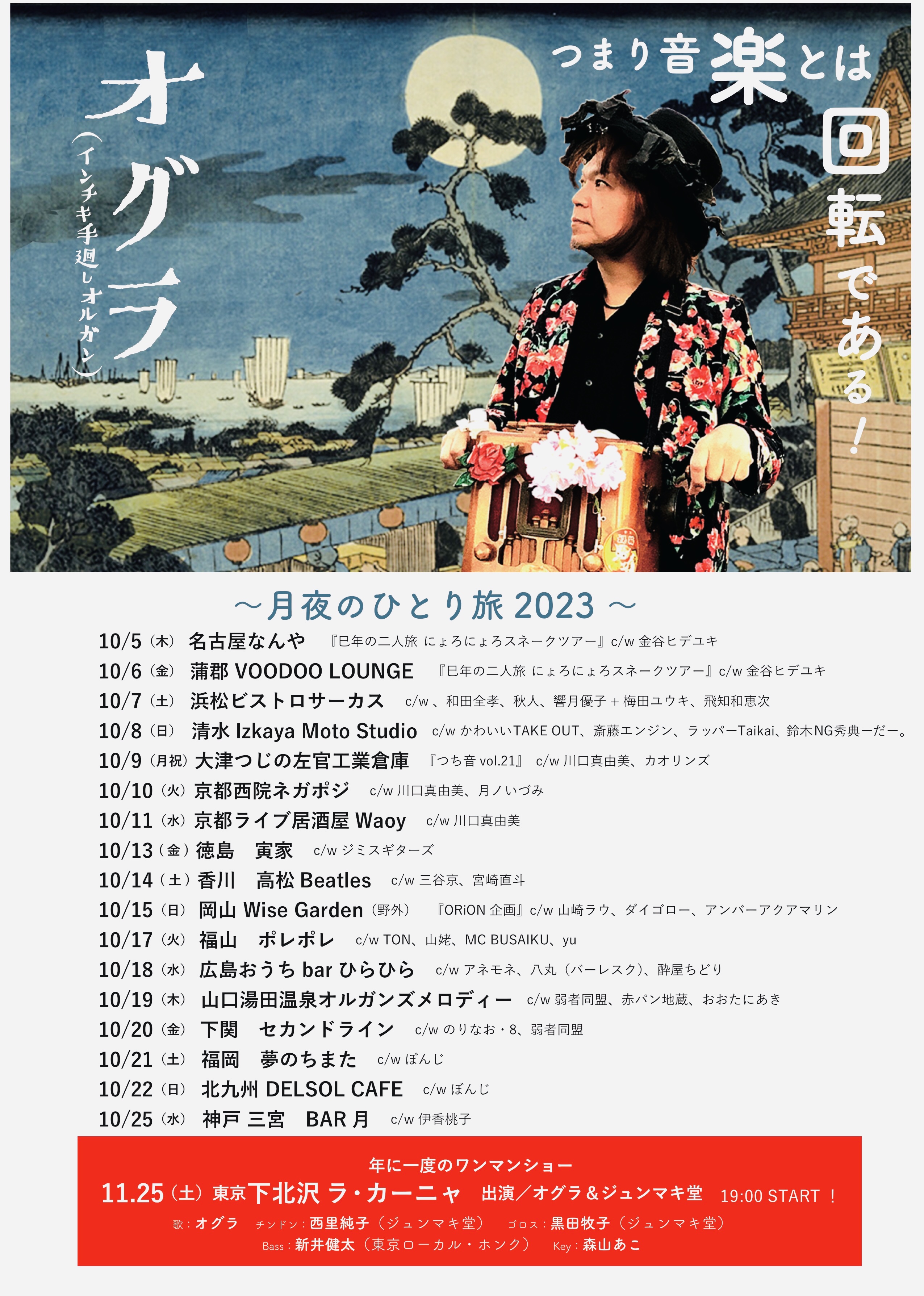 HP「オグラのヒミツ」を運営してくれてる篠やん、『寿町フリーコンサート実行委員会』松沢さん、金子ぶーさん、佐藤さん、園田さん、竹内さん、荒井さん親子、PA佐藤さん、遠峰あこさん、パギさん、生活館スタッフの皆さん、『ニュー風知空知』柏原さん、田中さん、じゅんさん、徳毛さん、『SAWYER CAFE 』コミーさん、宏暢さん、てっしー、サッちゃん『浜松エスケリータ68』後藤さん、マダム、ライオンちゃん、王子、十夢てん、堀内さん、チャンプさん&奥さん『足助のかじやさん』広瀬さん&スタッフのみなさん、安藤さん、葉さん、日々かりめろの御二人、いわさきけんちゃん、旅籠の女将さん、『焼き鳥元ちゃん』ロータスともちゃん、元ちゃん&母上、しげるさん、ズキューンの御二人、エリーダスマンの皆んな、谷口&奥方、『ぐらBAR’S』ママさん、マスター、かんなさん、大島さん、田代さん、間藤さん、小百合さん、犬ゾンビーズ、シモちゃん、ニッシー、宗野敏男そうちゃん、ミシゴめぐちゃん、宮城さん、城さん、瑞穂ちゃん、ディレッタントママさん&ふみえちゃん『難波屋』筒井さん、ヨッシーさん、さとちゃん、桃ちゃん、天四郎さん、日高さん、ヨッシーさん『大津つじの左官工業倉庫』つっちぃさん、カオリンズうっちーさん&カオリンさん、月ノいずみちゃん、アキヒトくん『Casa Midori 』みんみんさん、母上、ぱーこちゃん、虎大朗君、龍之介君、きんた、まかお、水星さん、だくちゃんりっちゃん、yO’ceansさん、サトチエさん、井上エリナさん、サンシモンさん、高平悠さん、平四郎さん、まよい猫さ『ちどり座』トモローさん、かよさん、ちょこもんさん、一級河川荒川団の皆さん、ゑ川史子さん、YugletWaterlooJugBandの皆の衆、鈴木さん、堀江淳さん、天田えまさん、田中さん、宍戸留美ちゃん、多田さん、母上、妹さん、カブちゃん、泥酔紳士、鈴木さん『第32回下北沢音楽祭』金子さん、スマイリー原島さん、マキちゃん、滝君、下北沢音楽祭運営スタッフの皆さん、ハッチゃん、Lちゃん『岩倉市コミュニティカフェかがよひ』岸さん、晴さん、川合ケンさん、泰造くんファミリー、『恵那市 音楽酒房ともばぁ』ともさん、はるさん、りすけさん、大井ちゃん、カリくん、万葉さん、加藤さん、猫どん(リズム、いよは、ドレミ、デュカ、シオン、エナ、ポチ、こまめ、あられ、メルモ)、『岐阜 高山ピースランド』中神さん、みのちゃん、ユウスケさん、『富山 音楽酒家 村門』樹さん、ペコさん、さゆりさん、福田さん、後藤さん、『金沢 JelousGuy』詩野りん、チャオさん、中井さん、あんちゃん、Shokoちゃん、理介さん、『台東区 泪橋ホール』裕美子さん、スタッフの皆さん、加集さん、サミーさん、『神田 THE SHOJIMARU』アザーガート ダイちゃん、章二丸さん、海老原さん、コスゲさん、『下北沢CLUB Que』二位さん、中村さん、高田さん、高橋さん、高橋さん、高橋さん、福永さん、生田さん、辻さん、『清水Drinkin' beer! HAM』岩ちゃん、はぎちゃん、宗ちゃん、貝殻s、BUMBLE BEATS、みっちゃん、テクちゃん、エンジン君、ハッコー、『三島ぐらBAR亭』マスター&グラママさん、スタッフさん、保雄君&あきこさん、世古さん、ゆかしさん、『長野ロズカフェ』丸山さん、利香さん、徹さん、合波さん、中村さん、小山さん、安沙奈さん、真美さん、真彩さん、ヒロさん、徹さん、彩音ちゃん、百福くん、なつめちゃん、荒井さん、樋口さん、『名古屋なんや』ぷよさん、G子さん、蘭さん、カリ子さん、麻紀ねえ、坂ちん、『蒲郡 VOODOO LOUNGE』きんちゃん、りょうや君、金谷ん、きんママさん、『浜松ビストロサーカス』かまたさん、Lillyさん、ユキエさん、たかこさん、ユウちゃん、ユウキさん、『清水Izkaya Moto Studio』元さん、麻友さん、えりたす&ひでたすさん、Taiki君、『京都西院ネガポジ』表現太郎ひょうさん、川口真由美ん、月ノいづみちゃん、スタッフの皆さん、『京都ライブ居酒屋Waoy』塩田さん、宇宙さん、びょうさん『徳島寅家』寅さん、明子さん、ジミスギター加藤さん、るりさん、『高松Beatles』新谷さん、京ちゃん、宮崎君、ゾミさん、☆NORi☆さん『岡山Wise Garden』大森さん、純子さん、お母さん、諒君、やぶさん、あゆちゃん、山崎ラウさん、ダイゴローさん、アンバーアクアマリンさん『福山ポレポレ』ゆうさん、じっちゃん、TON君、MC BUSAIKUさん『広島ひらひら』アネモネ&マサル、八丸さん、ムキムキ君、みかりん『湯田温泉オルガンズメロディー』英三さん、ゾエ、おおたにさん、よねさん『下関セカンドライン』酒本さん、慧音さん、スタッフの皆さん、のりなお・8の皆さん福本さん、Sちゃんご夫妻、でぇ吉さん、串崎さん、『福岡夢のちまた』ジンロウさん、ぼんじさん、あゆみさん『北九州DELSOL CAFE』大場さん御夫妻、Masakiさん、せんくん&あやか『馬橋盆踊り』狩野さん、榎本さん、町内の皆さん、遠路遥々来てくれた踊り手さん、太鼓の皆さん、天狗連の皆さん、ペリ