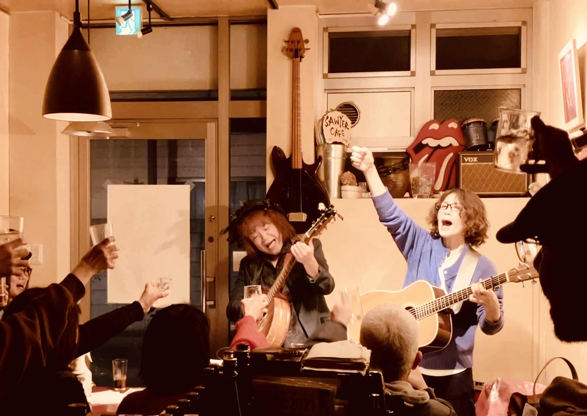 御殿場リンコロはDちゃんが出す空気で出来ている平和空間、お客さんはベリィホットで酔っ払いで、故郷に帰ってきたような感覚。久々に『567号線のテーマ』を二人で披露、来年音源化しようという話に発展してるぜ。