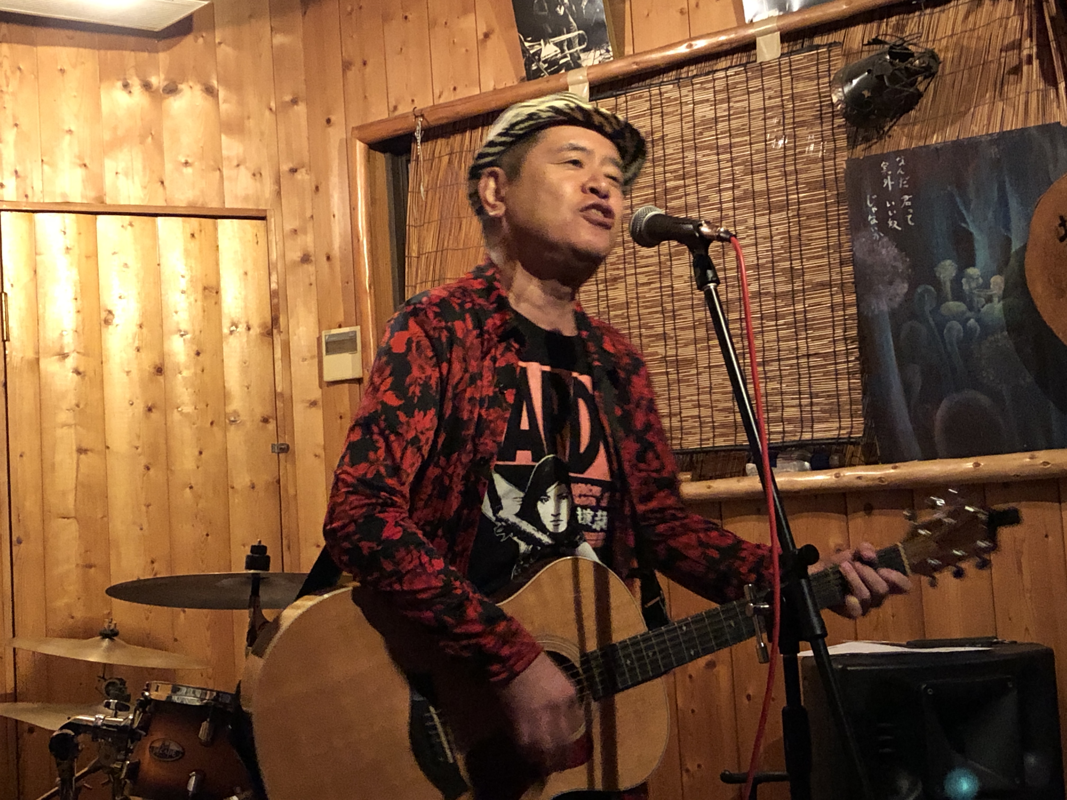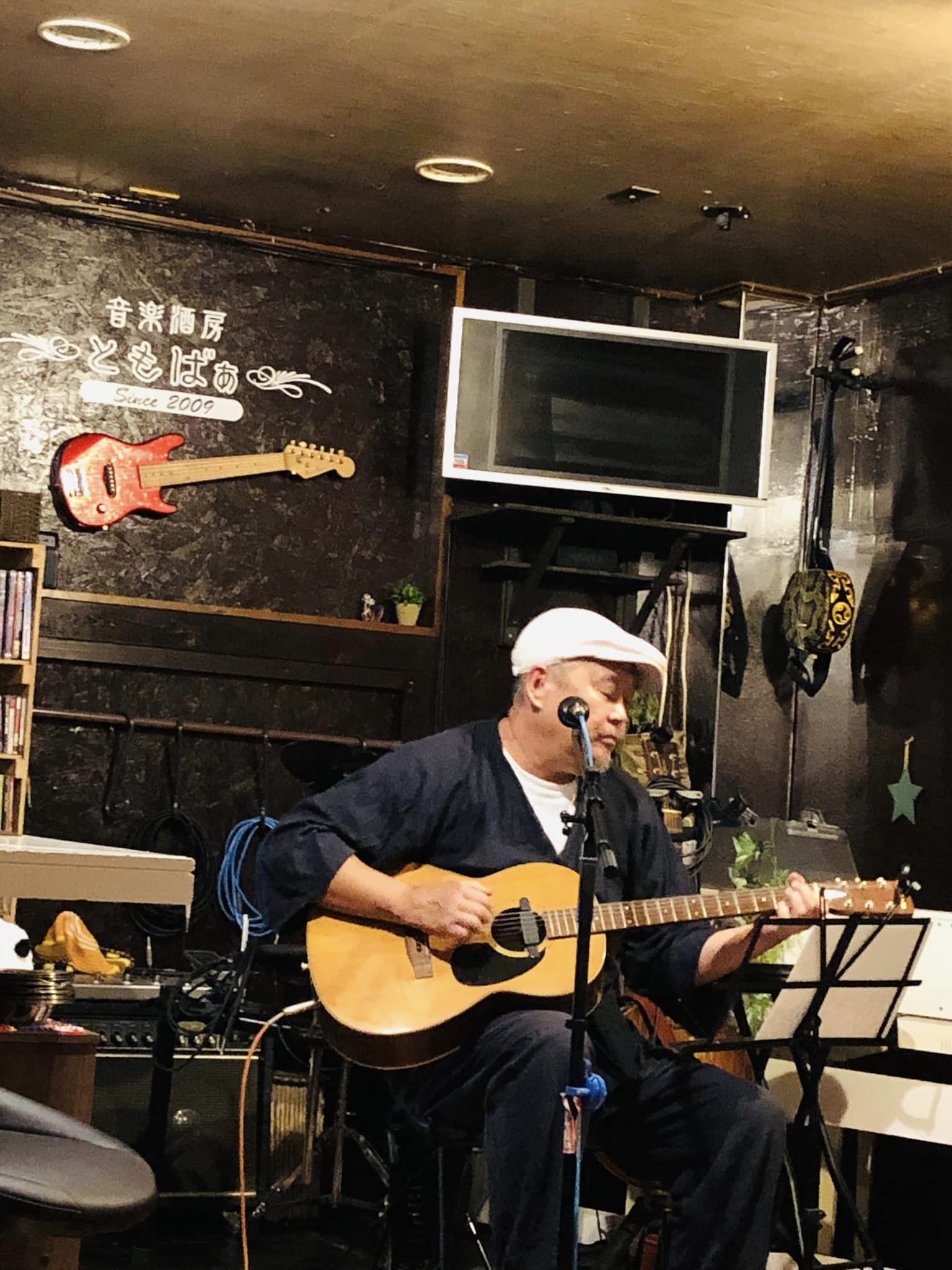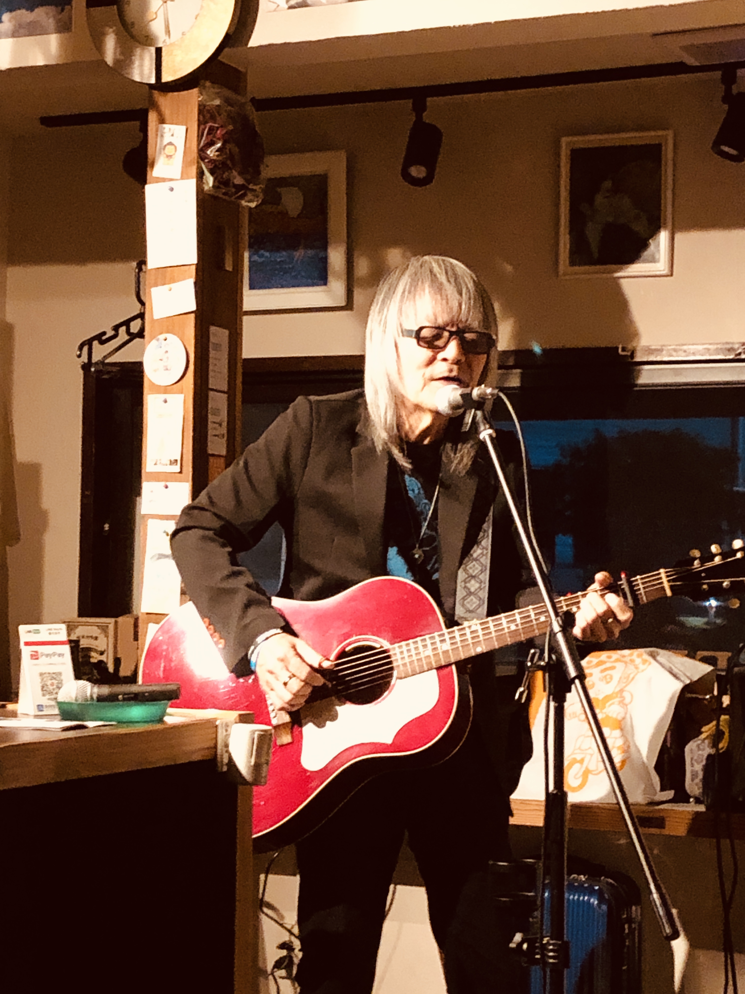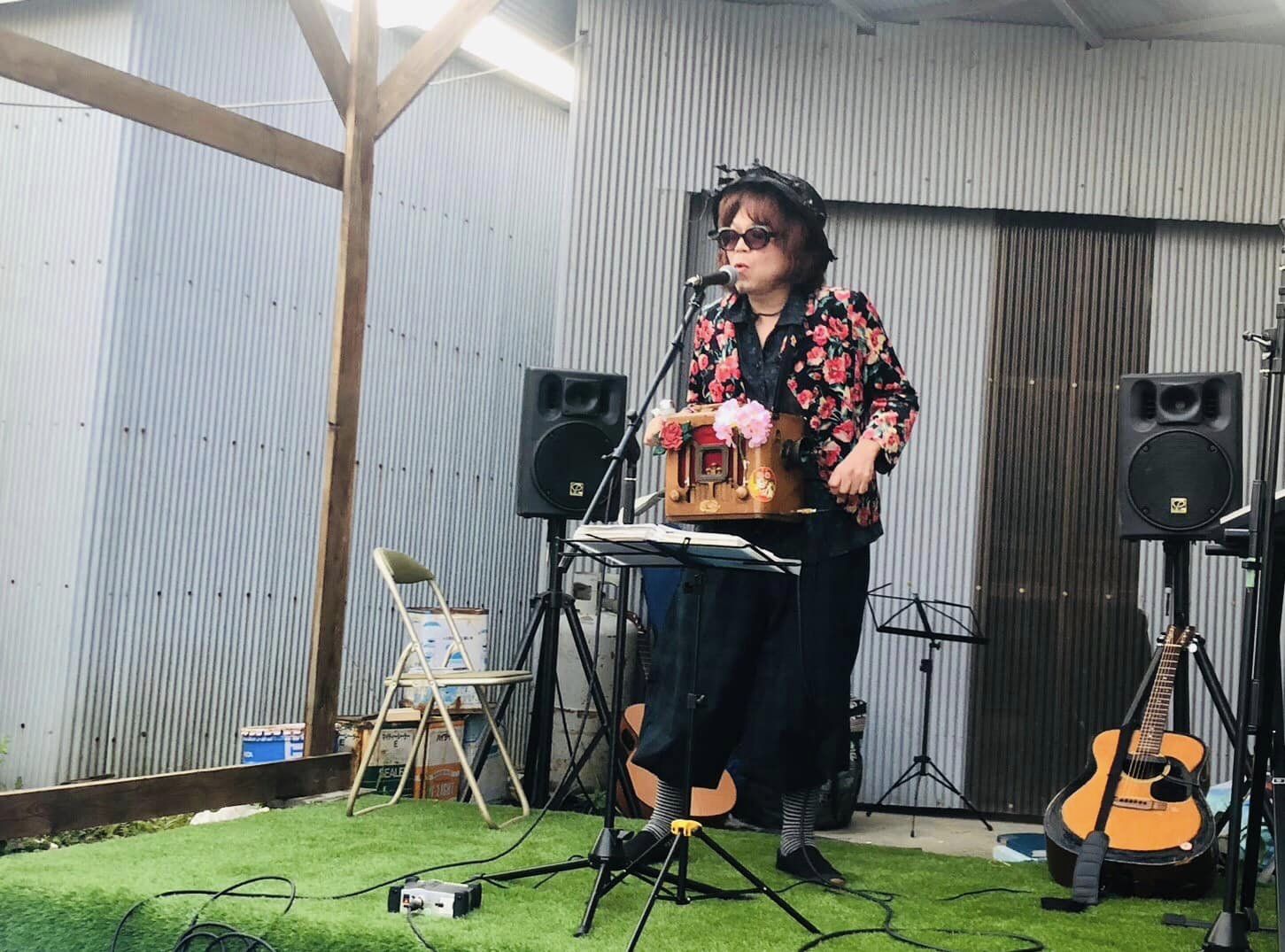 コロナで2年間介護施設へ行けてないので年配の人達の前で歌うのは久々。「夜来香」「港が見える丘」などカバー多めの選曲。