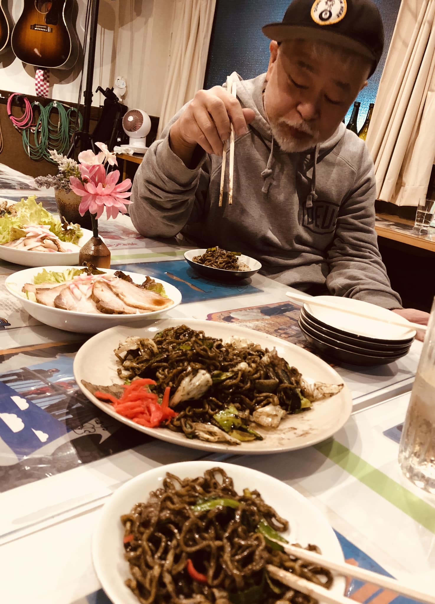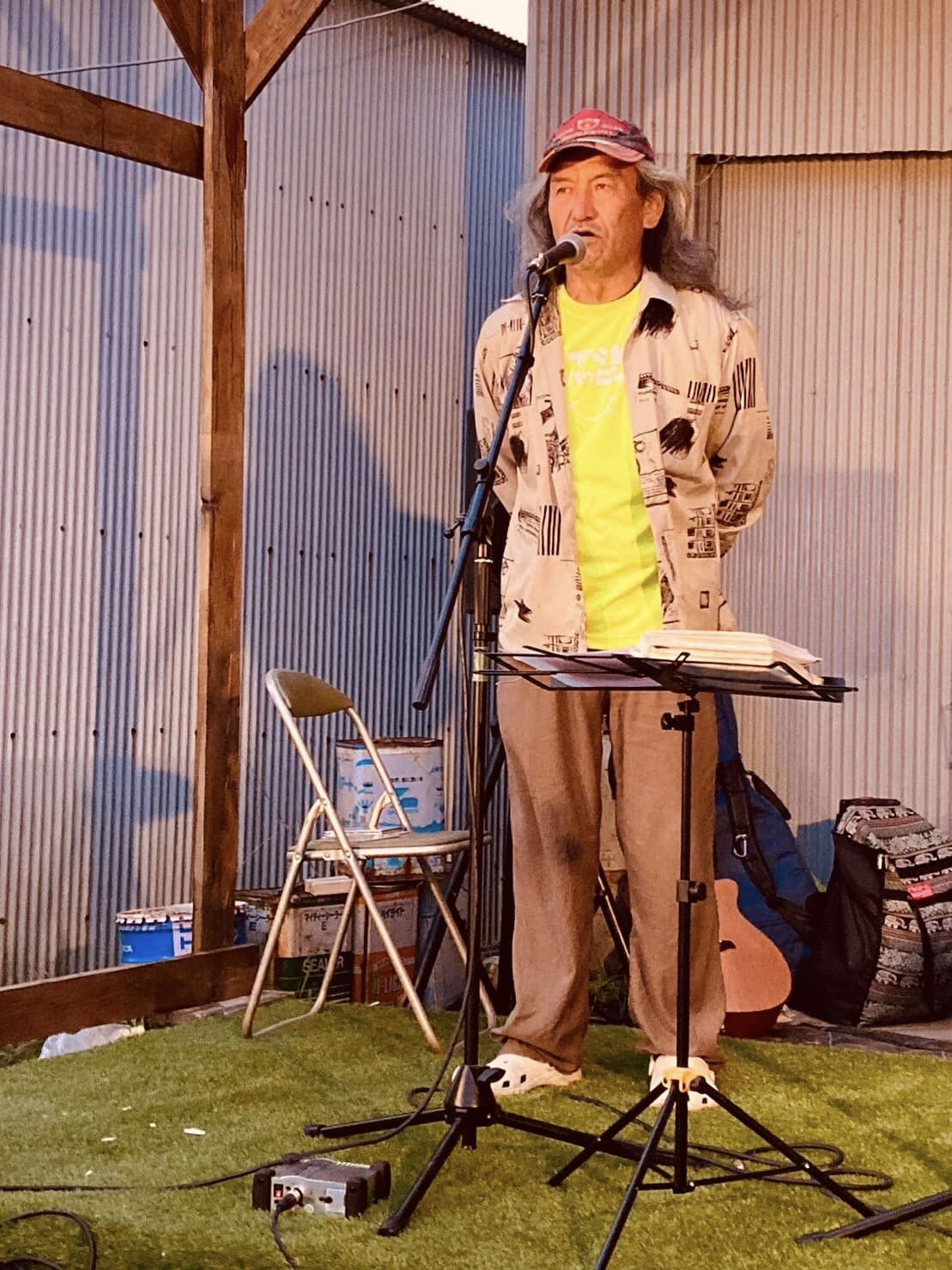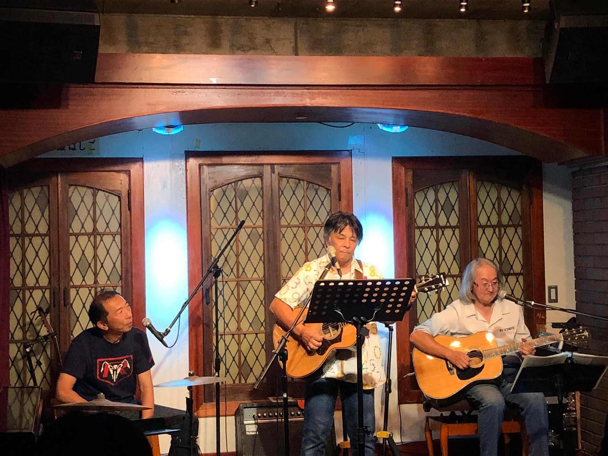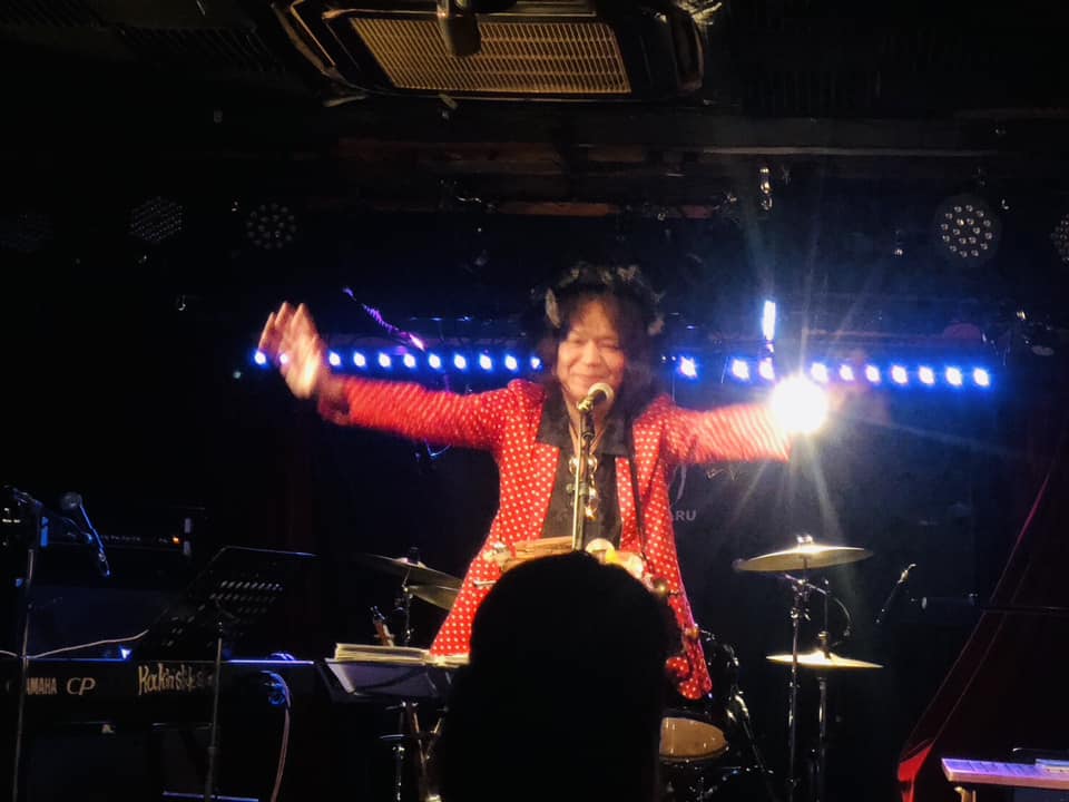 コロナで2年間介護施設へ行けてないので年配の人達の前で歌うのは久々。「夜来香」「港が見える丘」などカバー多めの選曲。