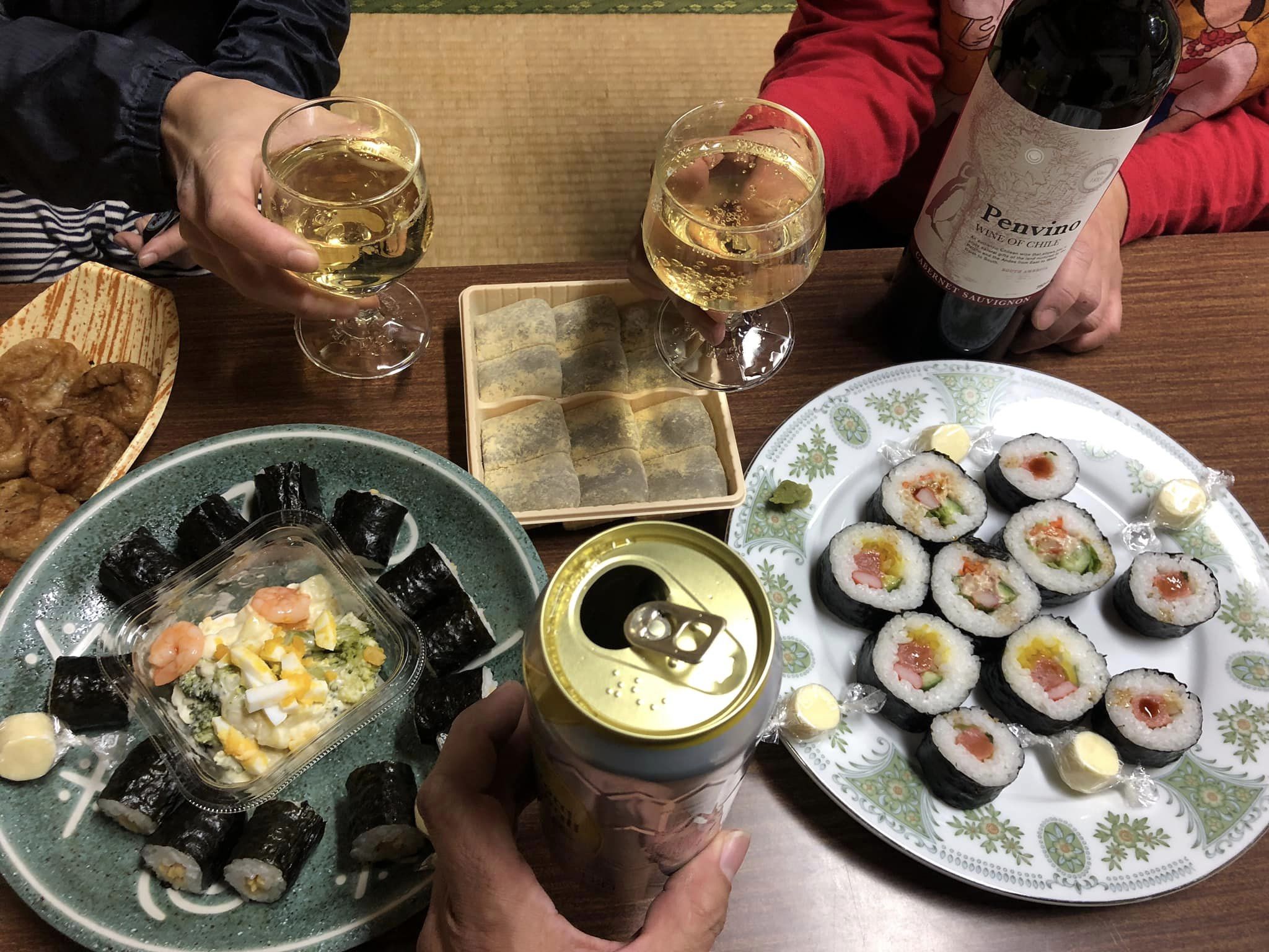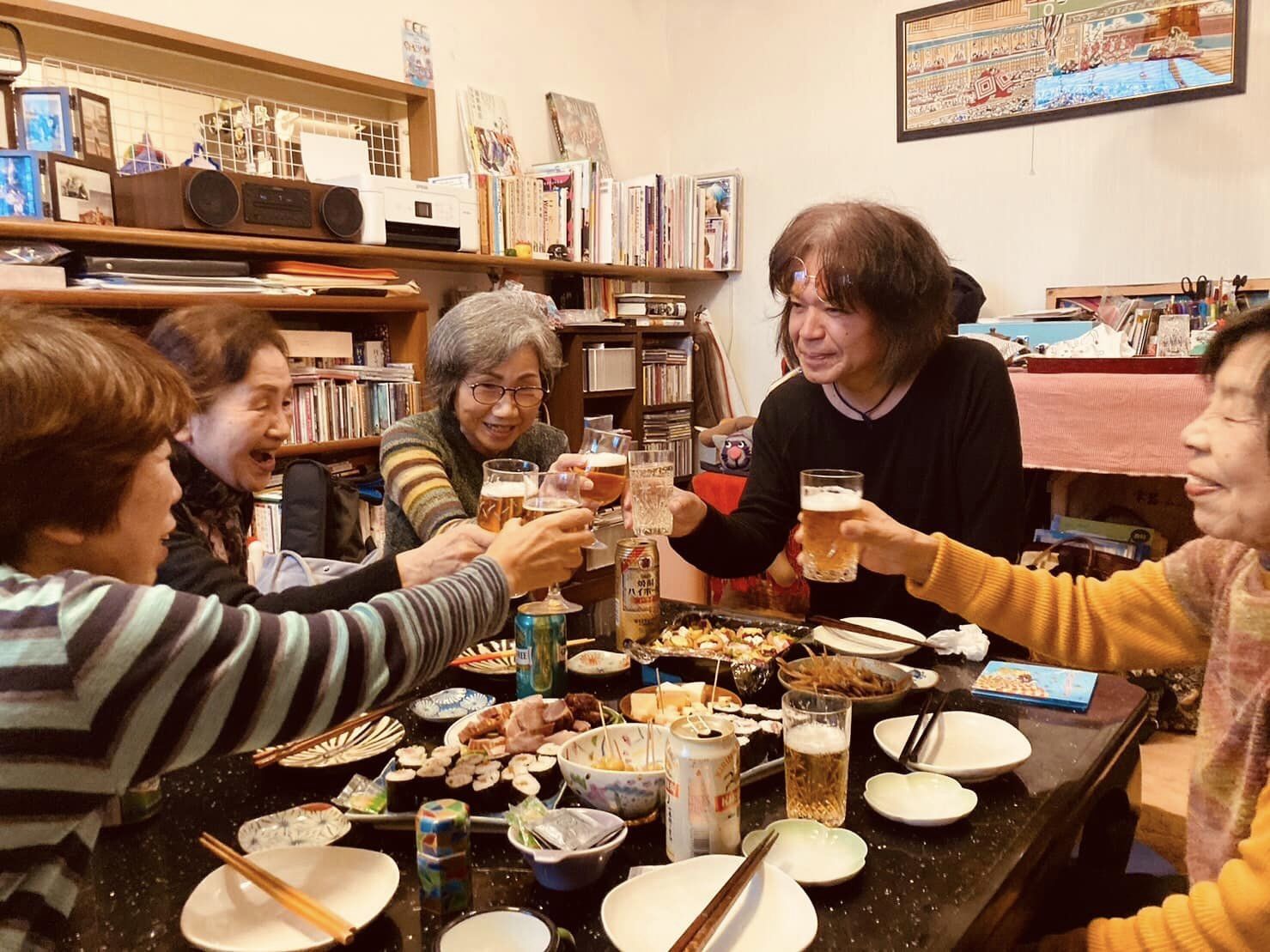 終演後、皆んなで持ち寄った料理で乾杯、マキちゃんババロアも堪能したよ、皆さん脳が若くインテリで、中原中也、サッチモの話など同年代と喋っている感覚。